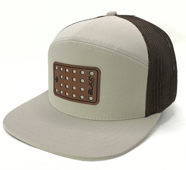 Panel Trucker Mesh Back Cap, Medium profile seven panel structured cap, Classic flat bill visor, 100% polyester fabric with trucker mesh, Adjustable snapback closure
